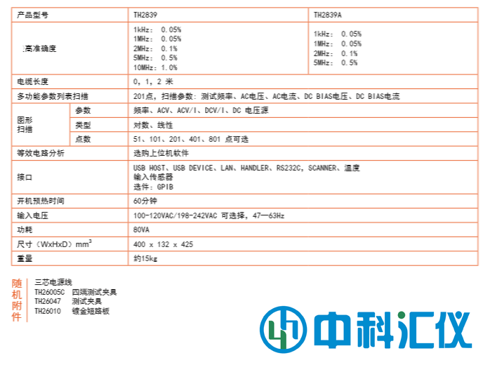 TH2839以其的性能可以实现商业标准和*用标准如IEC和MIL标准的各种测试。